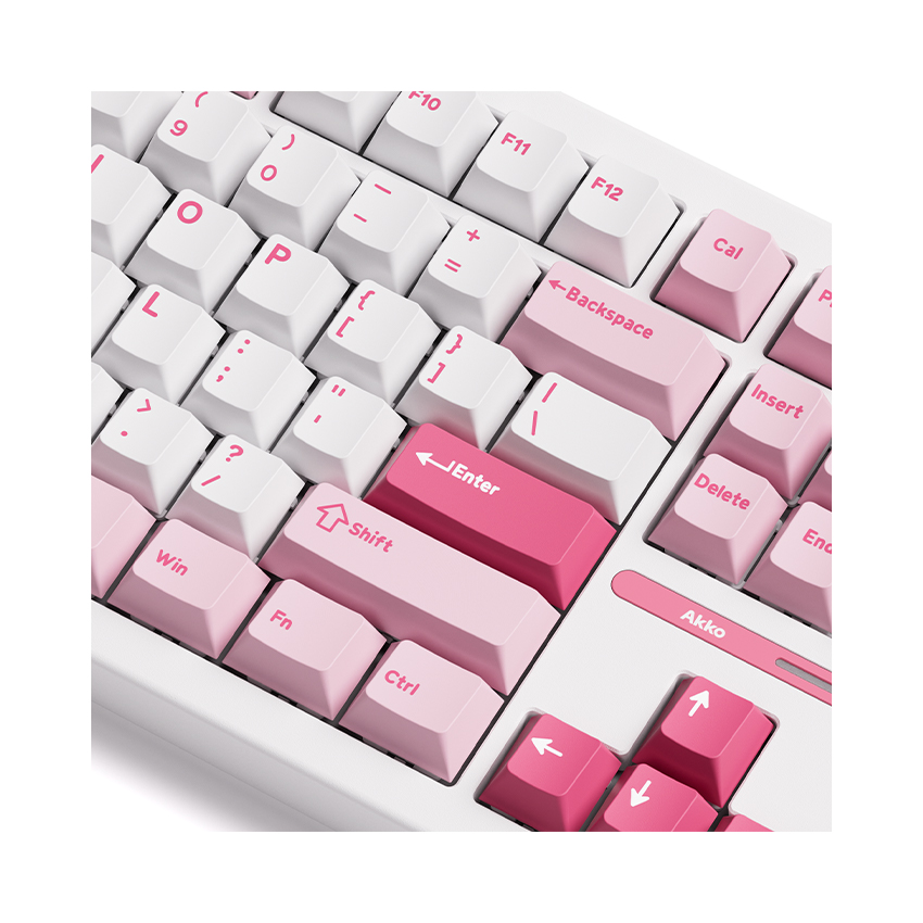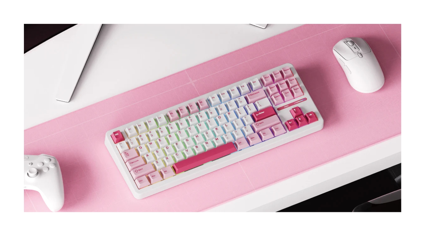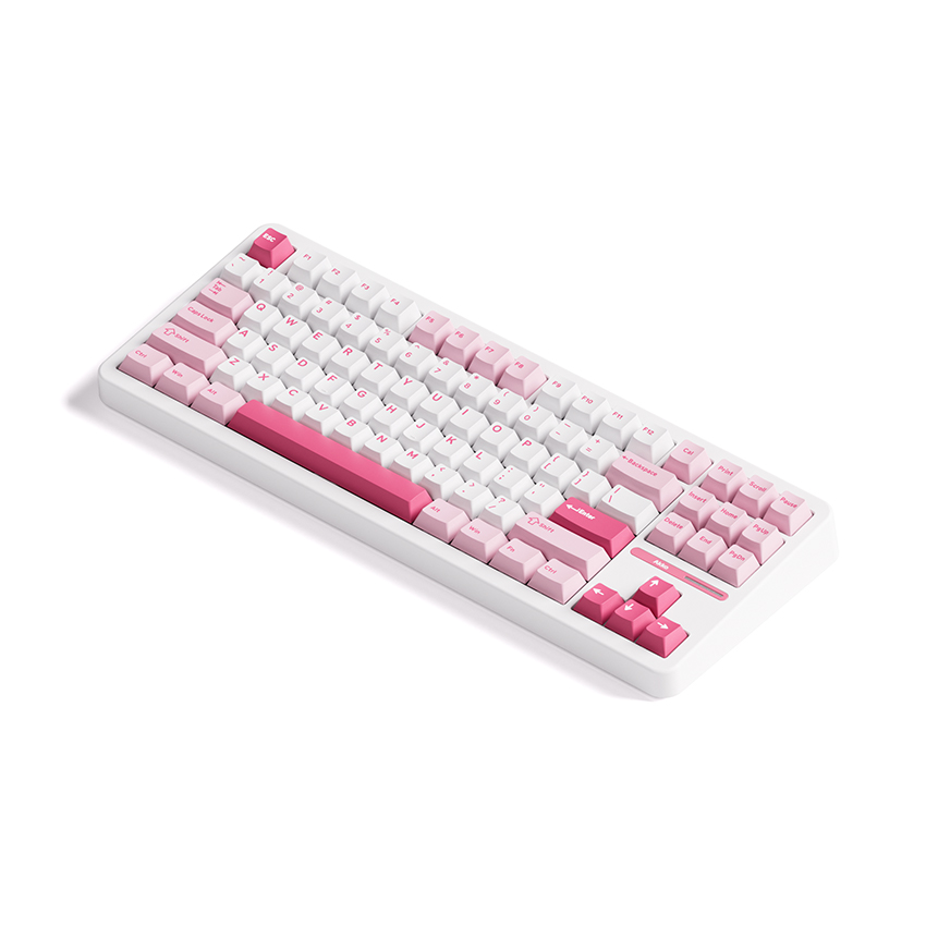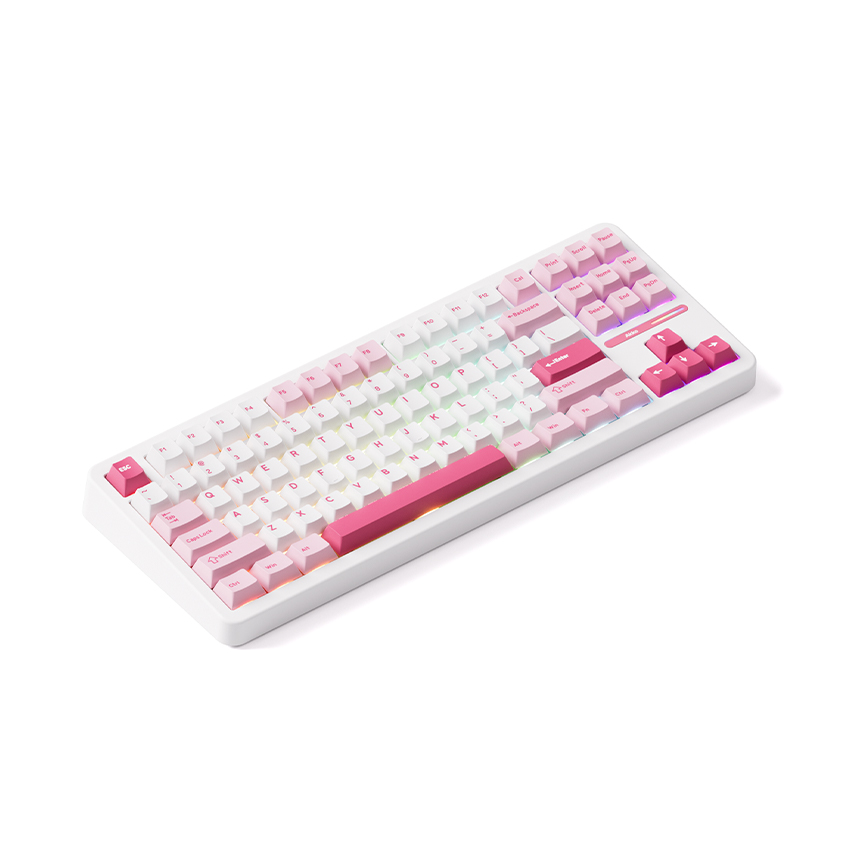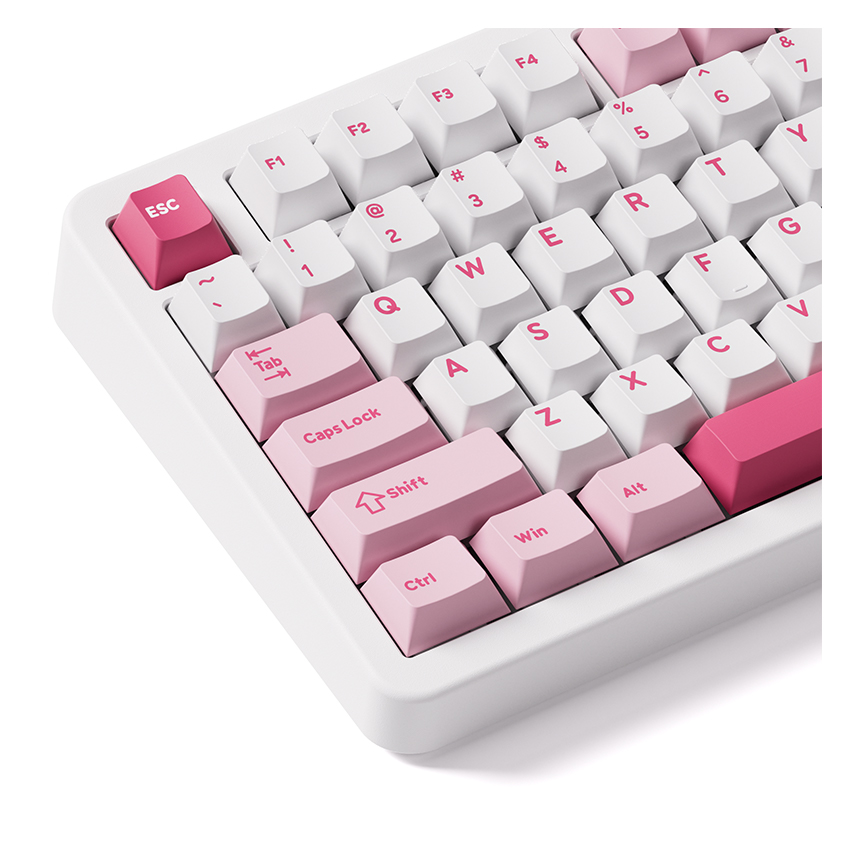 Bàn phím sở hữu phối màu hồng – trắng thanh nhã, lấy cảm hứng từ hoa anh đào nở rộ. Thân bàn phím được hoàn thiện tỉ mỉ, tạo cảm giác cao cấp và mềm mại khi chạm vào. Dòng chữ side-printed trên keycap giúp bề mặt phím sạch sẽ, gọn gàng, đồng thời tôn lên vẻ thẩm mỹ tối giản.