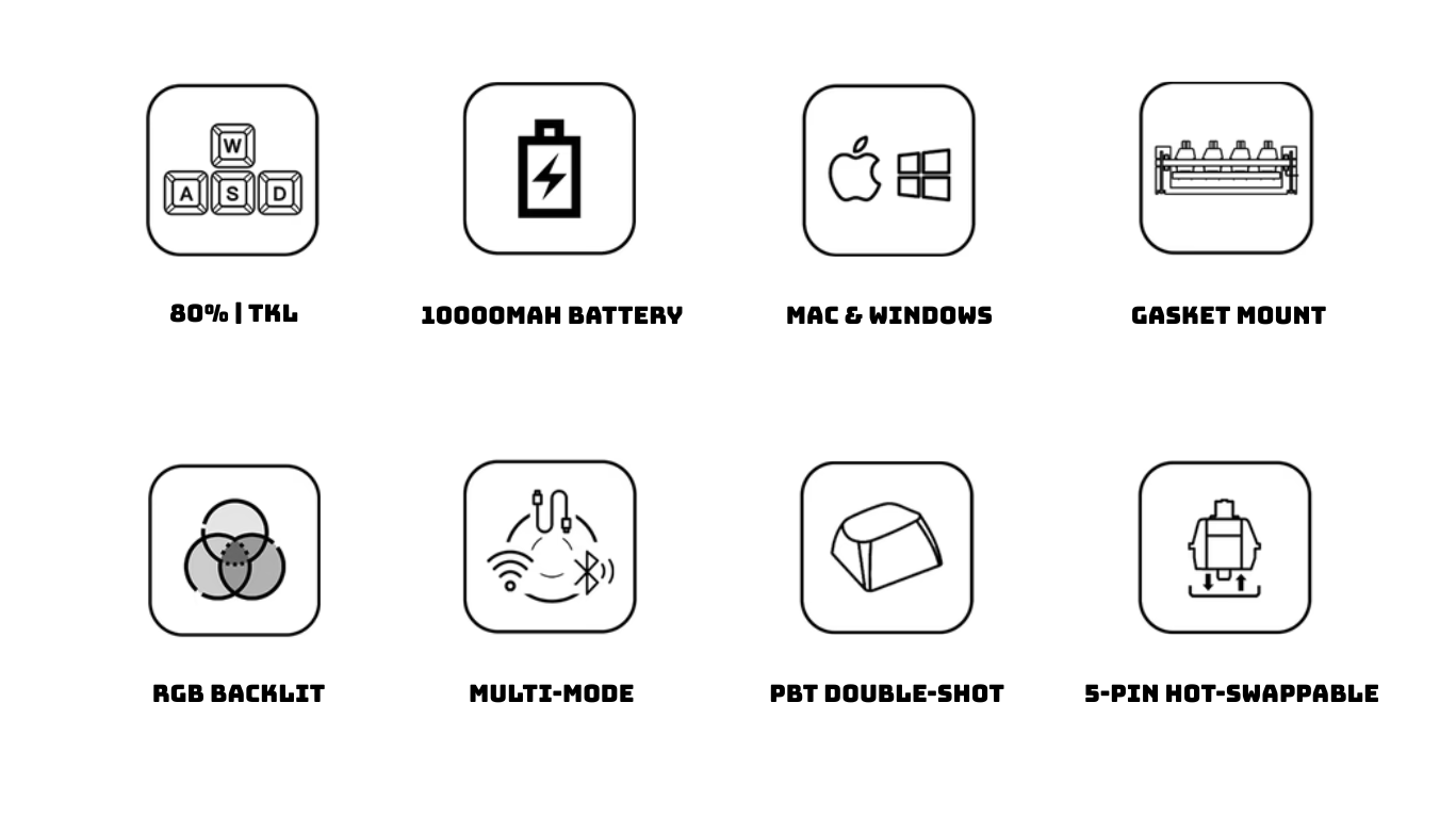 Toàn bộ keycap được làm từ chất liệu PBT Double-shot bền bỉ, chống bóng, không mờ ký tự theo thời gian.