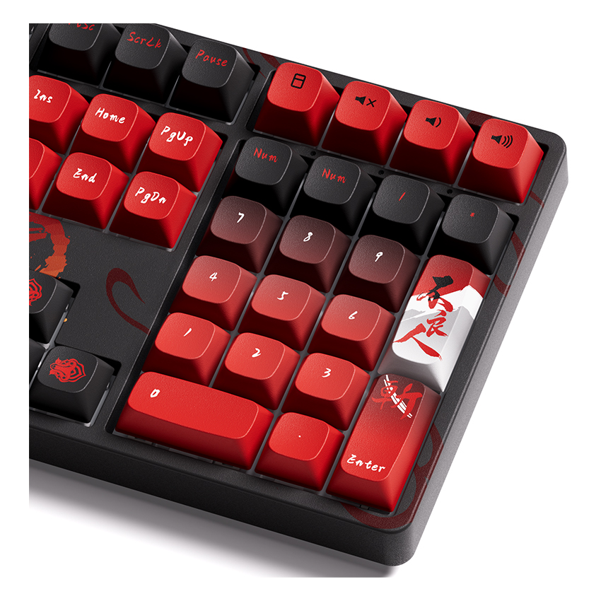 Keycaps làm từ nhựa PBT cao cấp, chống bóng, chống mòn, giữ màu lâu dài. Thiết kế profile Cherry mang lại trải nghiệm gõ thoải mái và chính xác.