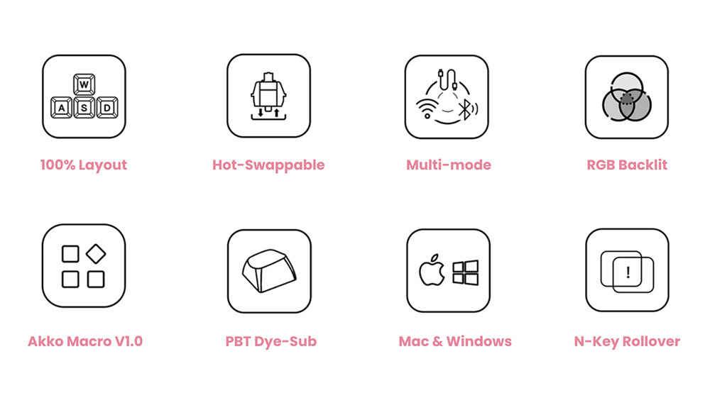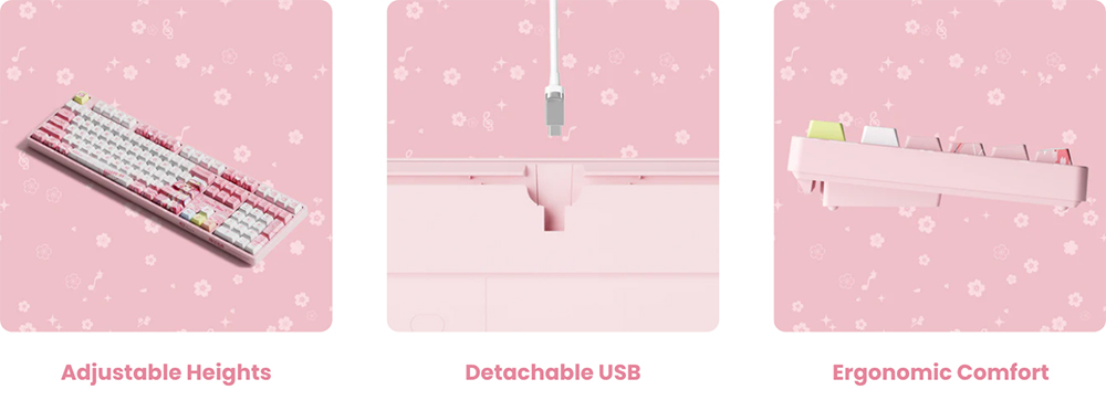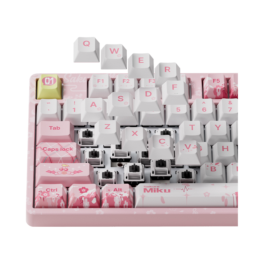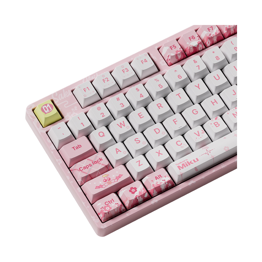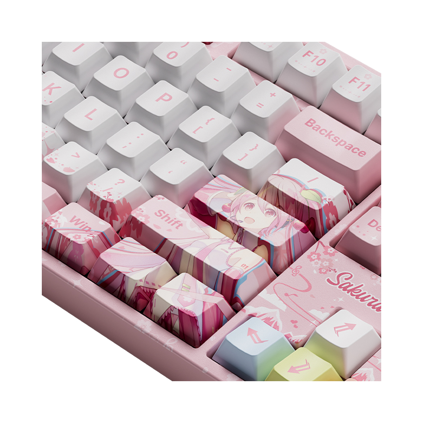 Lấy cảm hứng từ nhân vật Vocaloid Sakura Miku – phiên bản mùa xuân đáng yêu của Hatsune Miku, AKKO 5108B Plus – Sakura Miku Edition mang đến một thiết kế rực rỡ, tươi sáng và đầy sức sống. Tông hồng pastel kết hợp xanh ngọc nhẹ nhàng, cùng họa tiết hoa anh đào tinh tế, tạo nên một chiếc bàn phím không chỉ đẹp về ngoại hình mà còn giàu cảm xúc nghệ thuật.