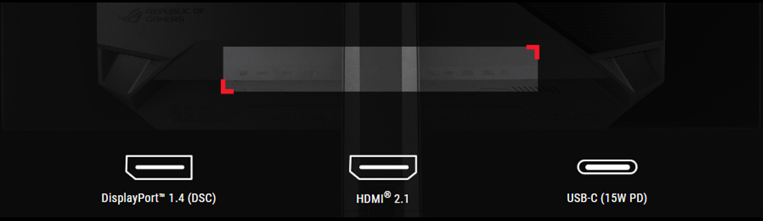 ROG Strix XG32UCWMG được trang bị đầy đủ cổng kết nối hiện đại: