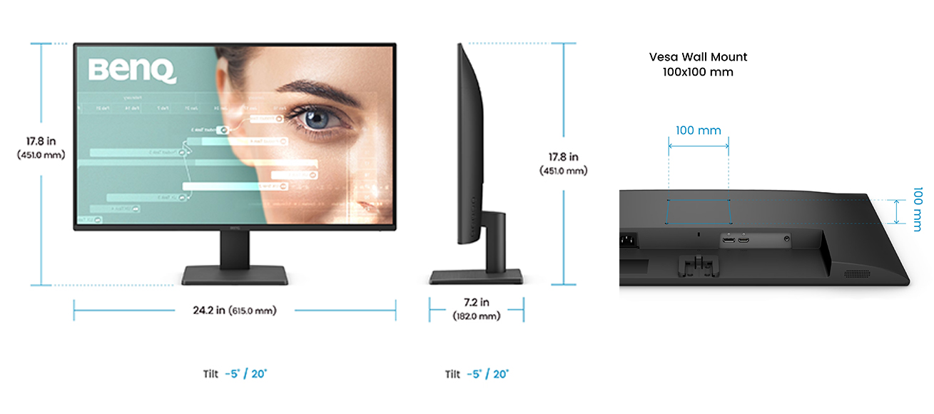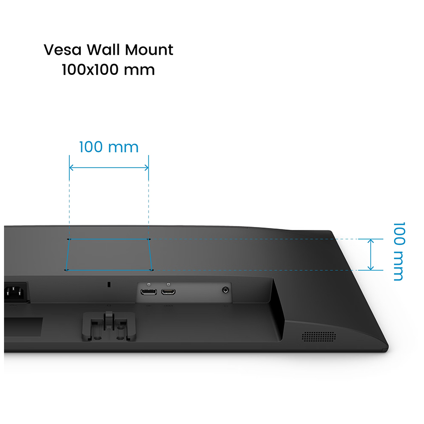 Hỗ trợ HDMI 1.4 và DisplayPort 1.2, đảm bảo tương thích với hầu hết PC, laptop hiện nay. Ngoài ra, ngàm VESA 100x100mm cho phép treo tường linh hoạt, tiết kiệm diện tích bàn làm việc.