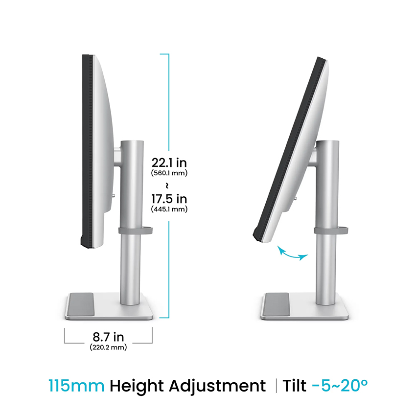 Giúp bạn dễ dàng tạo tư thế xem thoải mái và khoa học. Ngoài ra, màn hình còn hỗ trợ ngàm treo tường VESA 100×100 mm, tương thích với nhiều loại giá đỡ khác nhau để tiết kiệm không gian làm việc.