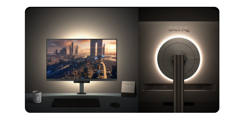 BenQ tích hợp đèn nền MoonHalo – hệ thống ánh sáng mô phỏng không gian làm việc tự nhiên, ấm áp và dịu mắt.
