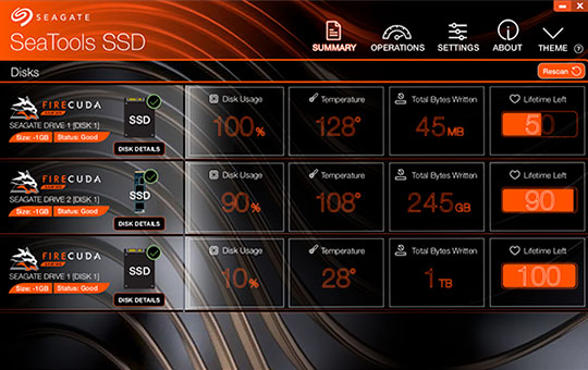 |  | SEATOOLS SSD – Ổ cứng SSD Seagate Firecuda 510 M.2 PCIe Gen3 x 4 NVMe được phân tích và theo dõi sức khỏe hằng ngày trên SeaTool. – Cài đặt phần mềm SeaTool cực kì dễ dàng – an toàn và tương thích tốt với hệ thống của bạn. – Bạn có thể download phần mềm SeaTool tại đây. |